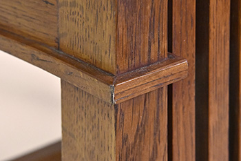 18) Dana-Thomas House Gallery Fireplace. View of the Gallery Fireplace from the East. Text on face: "The Dana-Thomas House. Photo: Doug Carr. 18. Detail of Gallery 1991. SP20-45. Dist. DTH Foundation." Original 35mm Color slide and high-res 10 x 7 digital image. (ST#1993.91 -18)