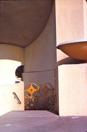 We are in receipt of a copy of a letter of December 18 from Mr. Schuller of the Woerfel Corporation to John Ottenheimer in which he refers to a verbal conversation with Mr. Mahos regarding gold annodizing on the exterior aluminum panels of the pylon relief. I assume that this has reference to the relief panels over the loud speakers and I wish to make clear these were not intended or specified to be gold annodized. As a matter of fact, we have indicated these panels as being painted with sand finish paint to match exterior concrete finish. These ornamental panels have always been considered as integrally part of the exterior concrete surface – and were never intended to be exposed metal...