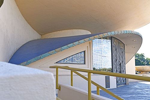 “The Annunciation Church was a very exciting project for my husband since he knew that the Greek Orthodox Church was the religion of my youth. He asked me what expression was most characteristic of the Greek Orthodox faith. After I told him that the cross was the essential symbol, he took some time to reflect on the finest form he could give to the Annunciation Church before touching his pencil. That was the way he always worked.