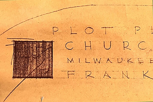 Description: Original blueprint for the Plot Plan dated September 1, 1958. Lower text: “Church for The Milwaukee Hellenic Community. Milwaukee, Wisconsin. Frank Lloyd Wright, Architect. Plot Plan. Sept. 1, 1958.” Within Square: “FLLW, Sept 1, 58.” Providence: The Estate of James Mahos, one of the building committee member for the Annunciation Greek Orthodox Church. Two copies. See additional details...