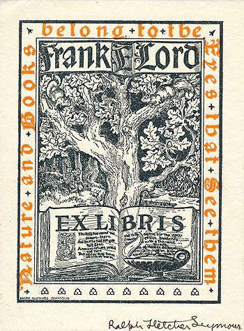 Both Ralph Fletcher Seymour and Fridolf Johnson collected bookplates, and at some point between 1900 and 1966, before the death of Seymour, they exchanged book plates. It may have been the bookplate published in this volume.