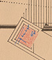Stylized illustration of Taliesin, first illustrated in 1939 for the broadside Taliesin. It described Taliesin, the Taliesin Fellowship, the Taliesin Playhouse and its programs. The Tower and Hill Apartments are on the left, the Studio in the center and the private residence on the right.