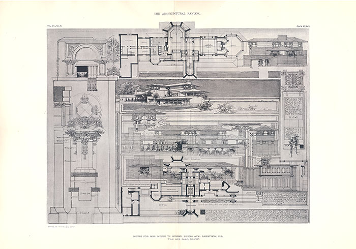 (Above, top left) D) Swelling for Mrs. Mary M. W. Adams, Highland Park, Ill. Frank Lloyd Wright Architect. The Pittsburgh Architectural Club's Exhibition. The American Architect and Building News. Regular Edition. Volume XCII., Number 1666. November 30, 1907.