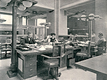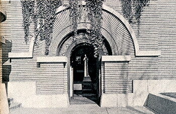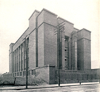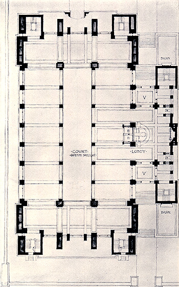 Description: “The Larkin Building in Buffalo. This business building, the architectural creation of Mr. Frank Lloyd Wright of Chicago, is reproduced in many excellent photographs, some of which will be shown in this article and others in the March number of the Architectural Record. From among them I select Fig. I as the most capable of giving a general idea of the design. The plan given in Fig. 8 shows the purpose of each member of the building, and the scale can be estimated as to the heights, on the basis afforded by the steps of the entrance doorways, checked by the height of the doorway (seen in Fig. I) themselves, and by comparison with the plan. It is not safe to utilize be of unusual dimension or laid with unusually wide joints. The nearest tower-like mass in Fig. I – that against which the telegraph pole is seen relieved – is about 90 feet high...” Includes six photographs and one illustration. See additional information concerning the Larkin Building...