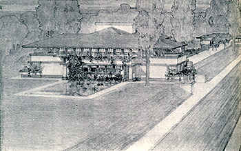 Description: The Home of an Artist-Architect. Louis H. Sullivan's Place at Ocean Springs, Mississippi.” Although attributed to Louis Sullivan, it has been recognized as a design by Frank Lloyd Wright. “Down in the sunny South, between New Orleans and Mobile, where the sparkling waters of the Gulf of Mexico makes one of its beautiful indentations, Biloxi Bay, girt by beach of golden sand and dark green pine trees, there lies a little tract of land some three hundred feet wide and eighteen hundred feet deep, in the midst of a forest.