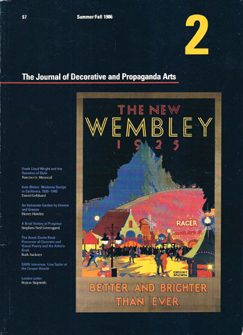 JOURNAL OF DECORATIVE AND PROPAGANDA ARTS Date: 1986 Title: Journal of Decorative and Propaganda Arts - Summer/Fall 1986 (Published quarterly by the Wolfson Foundation of Decorative and Propaganda Arts, Inc., Miami, Florida)