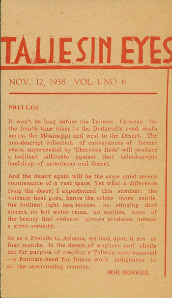 Title: Taliesin, Vol. 1 No 2, February 1941. "Taliesin, The Taliesin Fellowship Publication. Frank Lloyd Wright Editor."
