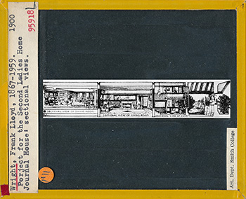 Text on face of slide: “Wright, Frank Lloyd, 1867-1959. 1900 (sic 1901). Project for the Second Ladies Home Journal House: sectional views. 95918. Art Dept Smith College.” Acquired from the Art Department at Smith College.